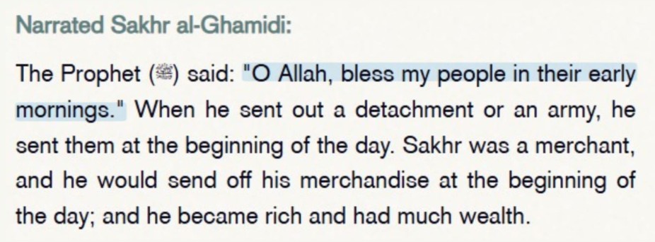 We should maximize our early hours because of the barakah (blessings) found in it due to the Prophet ﷺ supplication. It is usually the quietest time for us to focus. It is also the time when our willpower is at its peak to tackle the most critical and difficult tasks we have set for ourselves (Faris, 2024).